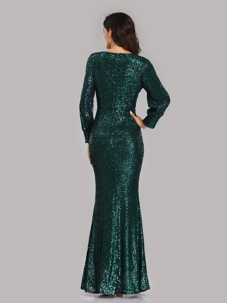 Élégance intemporelle avec la robe Gatsby verte à manches longues