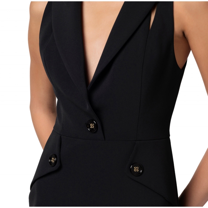 La robe smocking noire est une pièce féminine et chic de la marque Elisabetta Franchi.