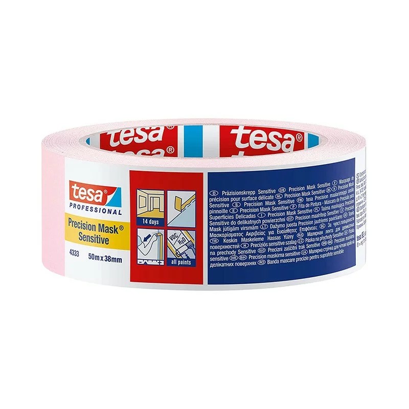 Le ruban adhésif rose clair Tesa 4333 PV1, est constitué d’un support papier extra fin et solide avec une masse adhésive acrylique spéciale.