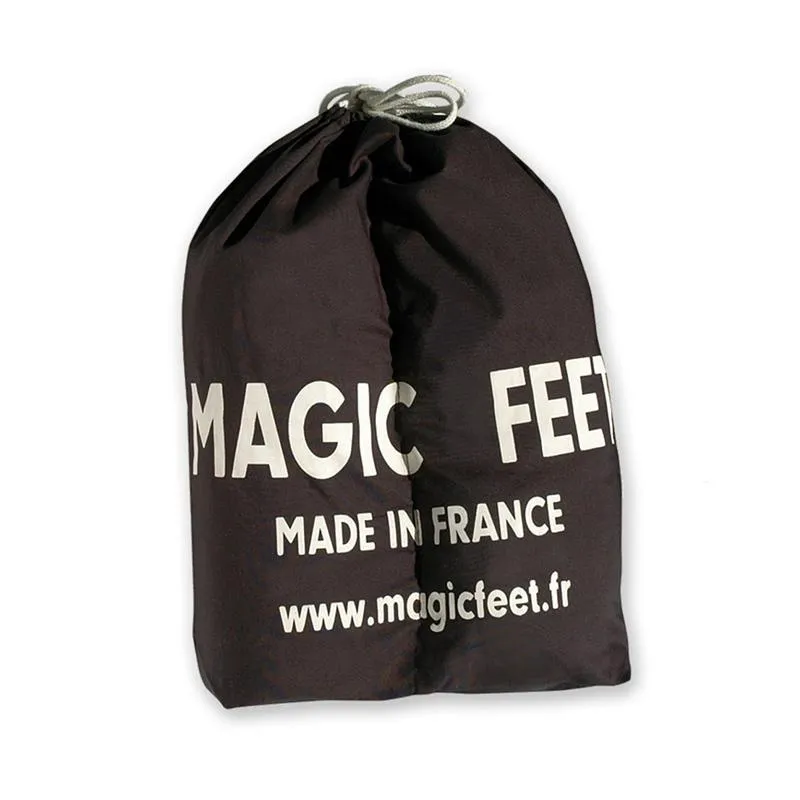 Le sac de transport de chaussures de la marque MAGIC FEET se ferme par un lien coulissant.