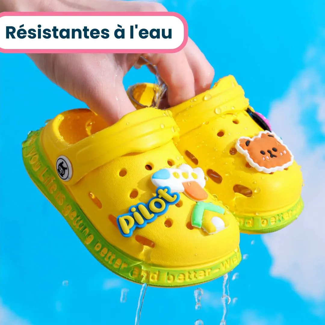 - Une semelle anti-glisse offre sécurité sur les aires de jeux ou au bord de l’eau.