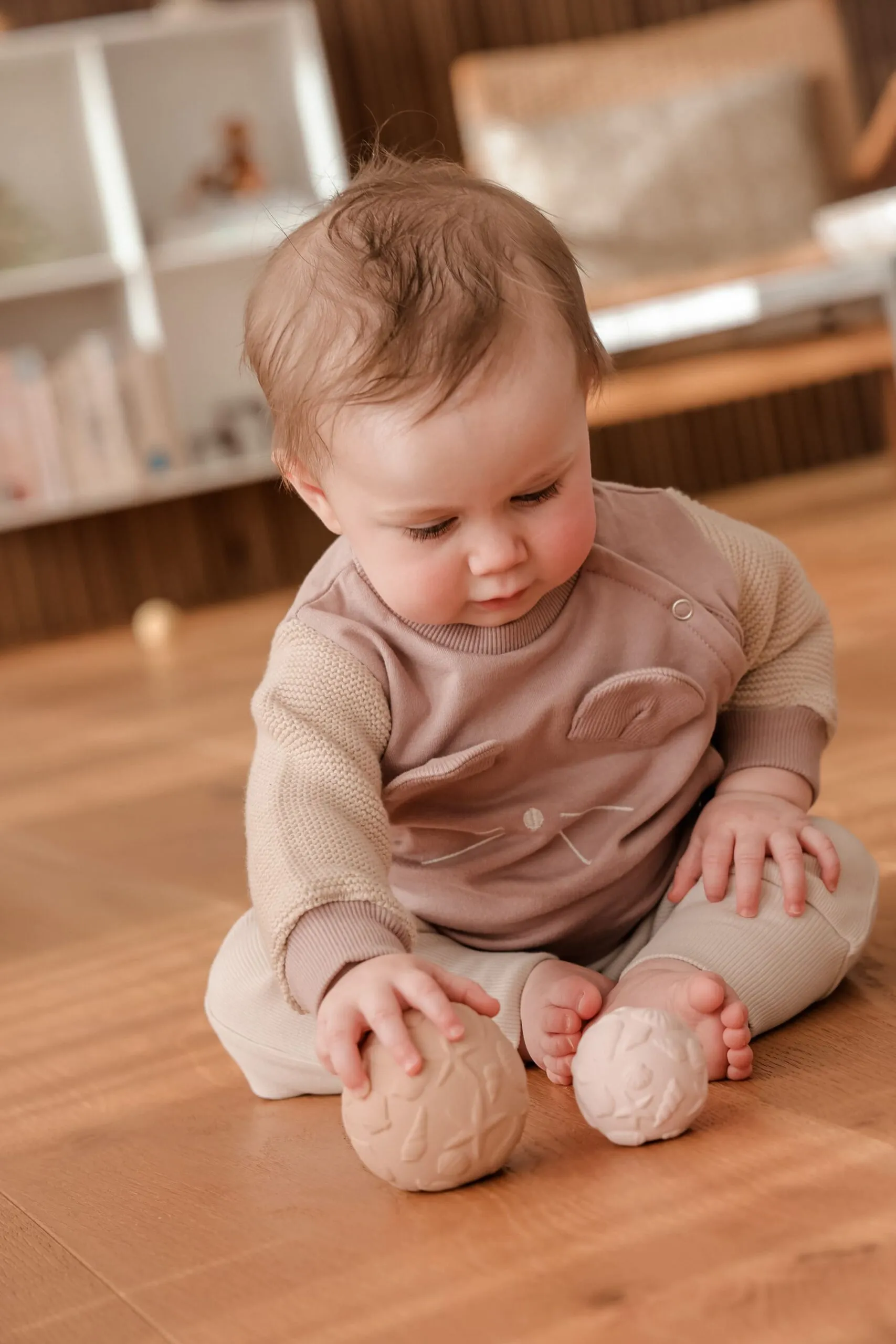 – Set de 2 balles bébé Natruba motifs coquillages coloris rose