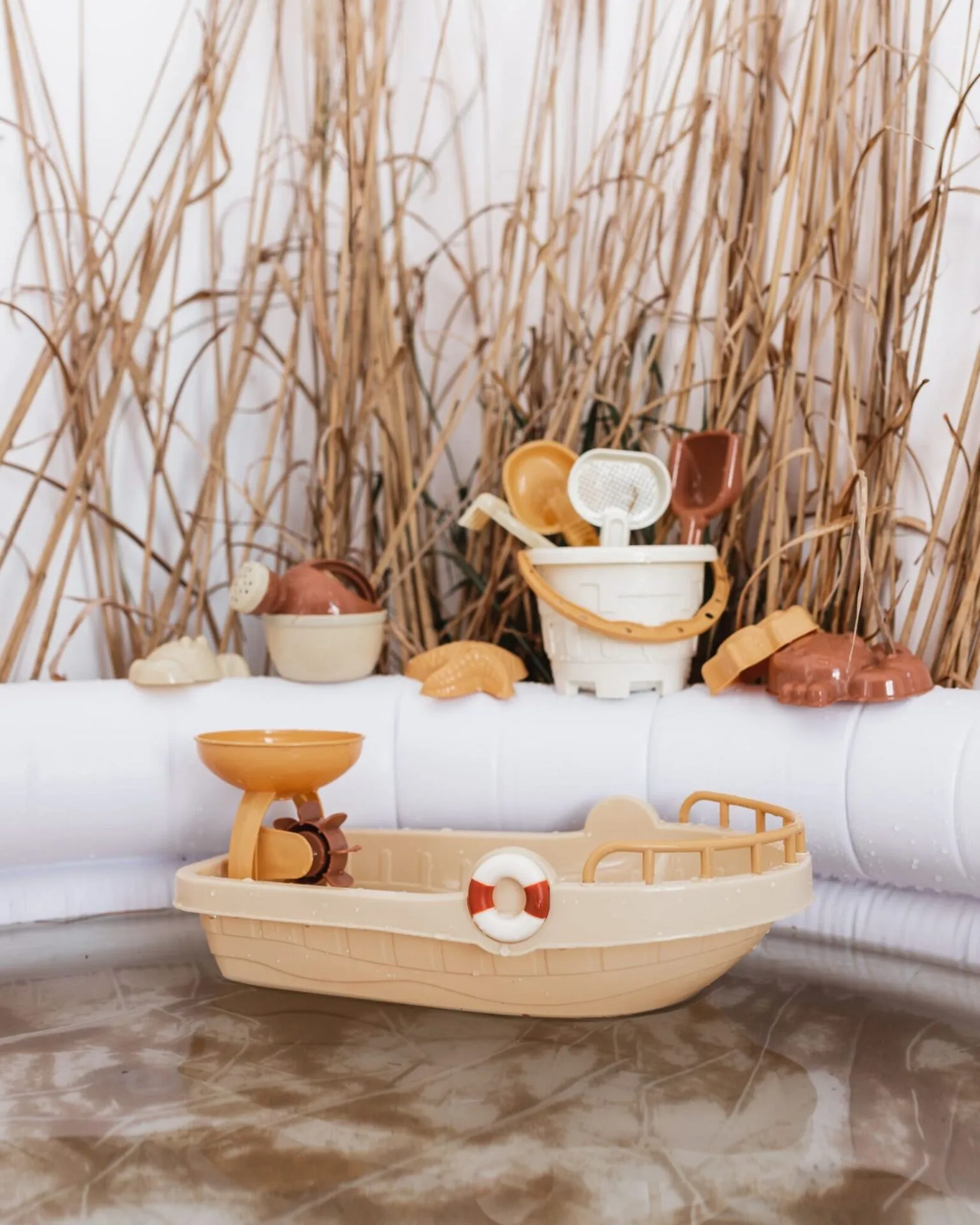 C’est le jouet idéal dans le bac à sable, dans le jardin ou à la plage pour créer de beaux châteaux de sable ou se créer de belles histoires avec le bateau à l’eau !