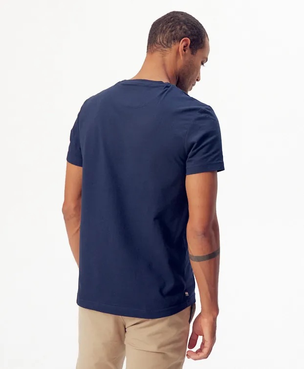 La couleur bleu marine, intemporelle et élégante, confère à ce T-shirt une polyvalence qui s’adapte à toutes les occasions, que ce soit pour une journée décontractée ou une sortie plus habillée, sous une veste par exemple. Associée à la finesse de la sérigraphie, elle souligne avec subtilité l’originalité et la qualité de ce vêtement.