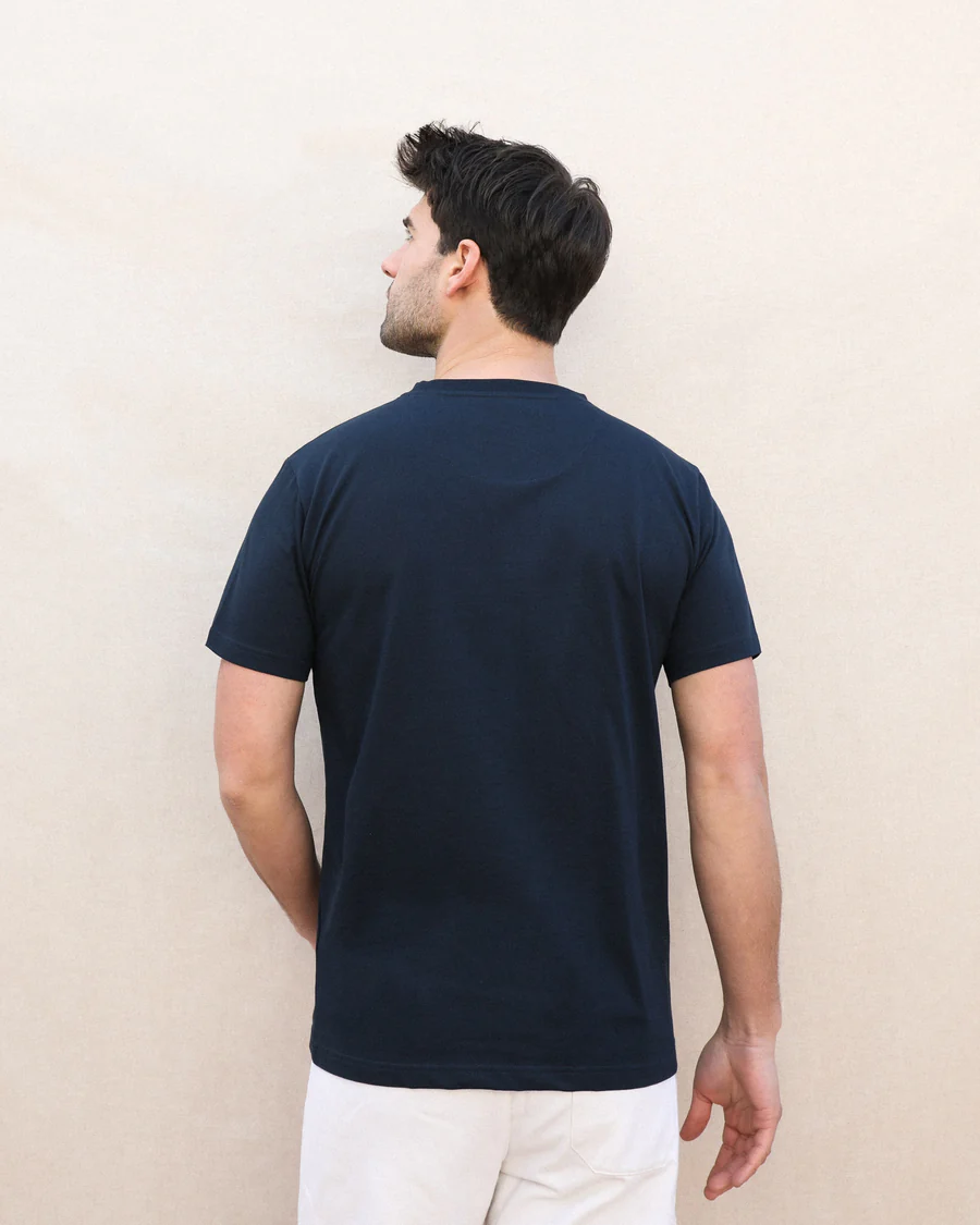 Fabriqué au Portugal, pays réputé pour son savoir-faire en matière de tricotage, ce t-shirt en jersey de coton biologique se distingue par son faible impact environnemental et sa durabilité. Vous pourrez le porter décontracté l’été en bermuda ou à la demi-saison ou en hiver sur un jean.