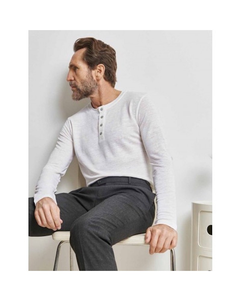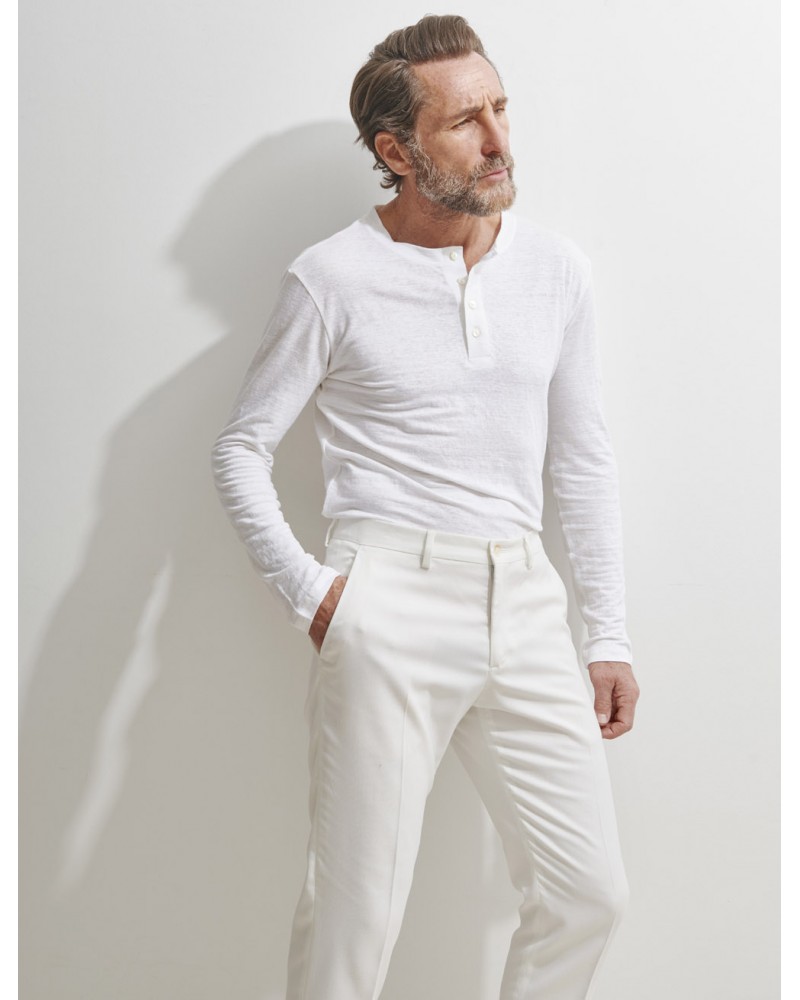 Une pièce aussi facile à porter avec un jean qu’avec un chino ! L’utilisation de lin apporte une souplesse et un plombé à ce T-Shirt qui sera parfait cet été pour flâner au bord de l’eau.