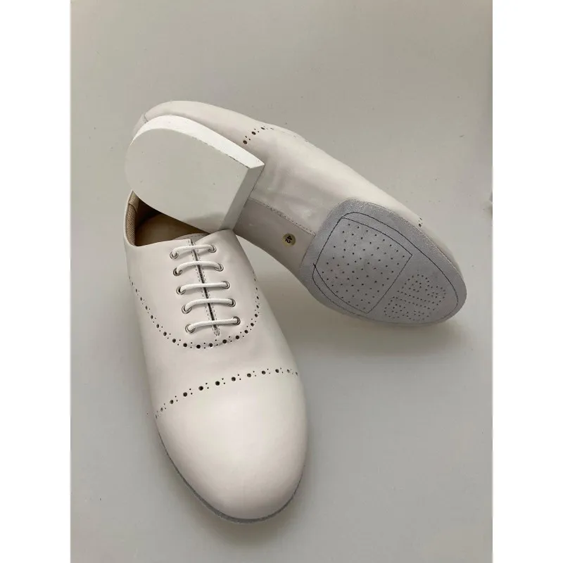 • Chaussures en cuir fin et souple blanc avec des perforations décoratives