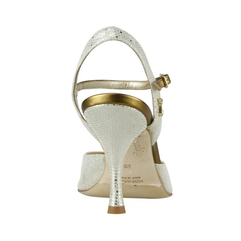 • Chaussures de tango en cuir imprimé platine et cuir or foncé