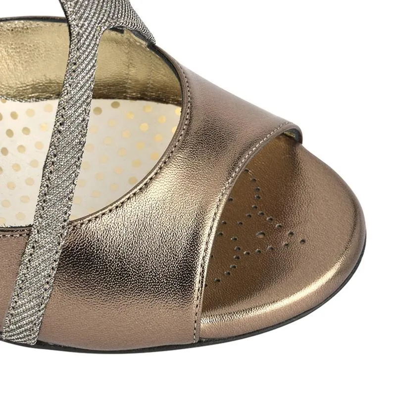 Chaussures de tango en cuir bronze et tissu argent