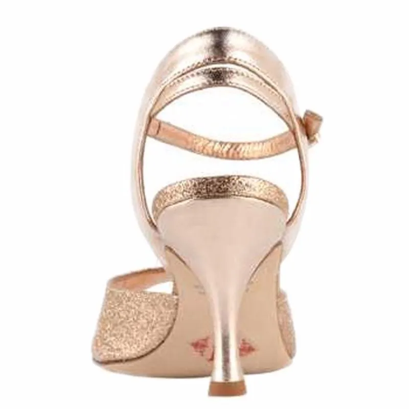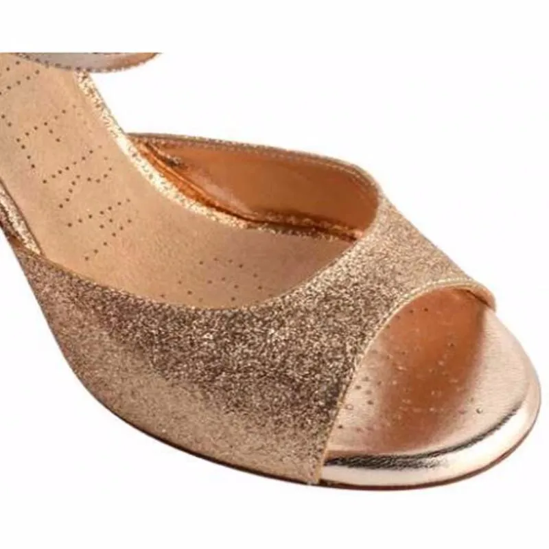 • Chaussures de tango réalisées en cuir or rose et paillettes or rose