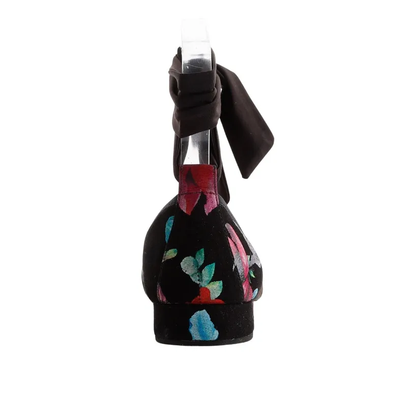 • Talon recouvert de cuir noir à fleurs de 2 cm.