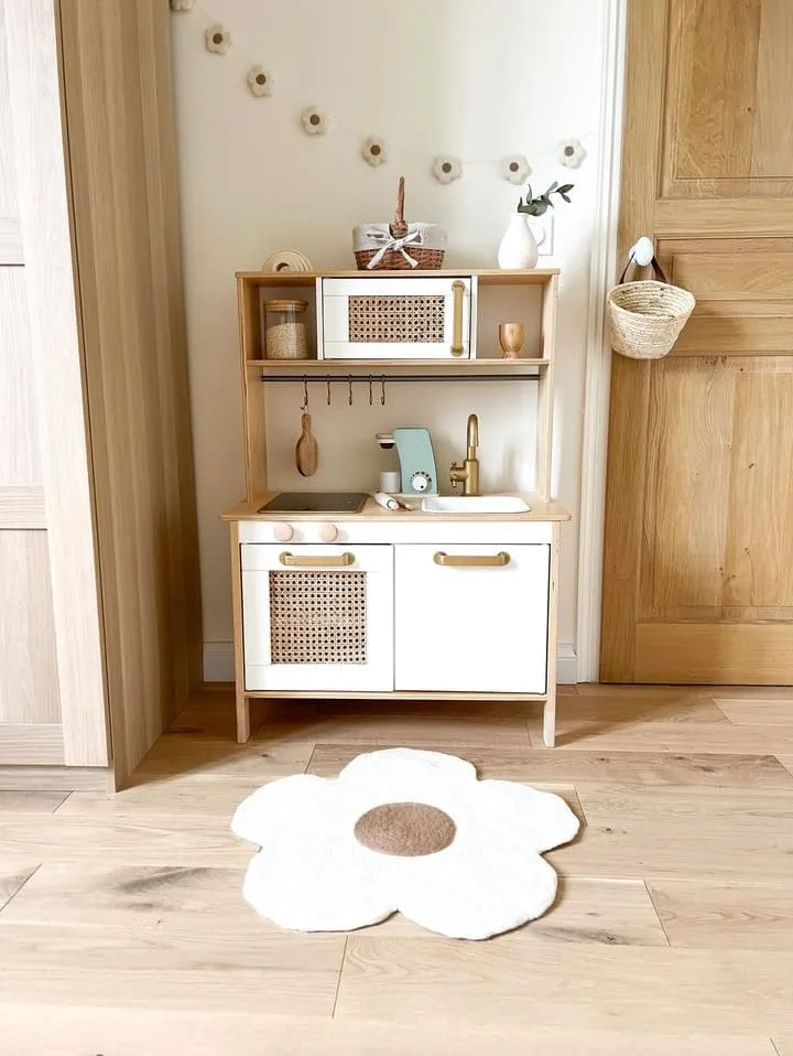 Décorez la chambre de votre enfant avec poésie et douceur, avec le tapis fleur en laine feutrée de Bee bohème !
