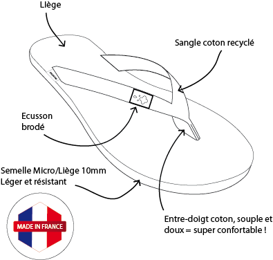 Fabriquées avec amour en France, ces tongs incarnent l’excellence artisanale française. Chaque paire est le fruit d’un travail méticuleux et d’un souci du détail inégalé. En choisissant nos tongs, vous optez pour un produit de qualité, conçu pour durer et pour accompagner vos aventures estivales avec style et élégance.