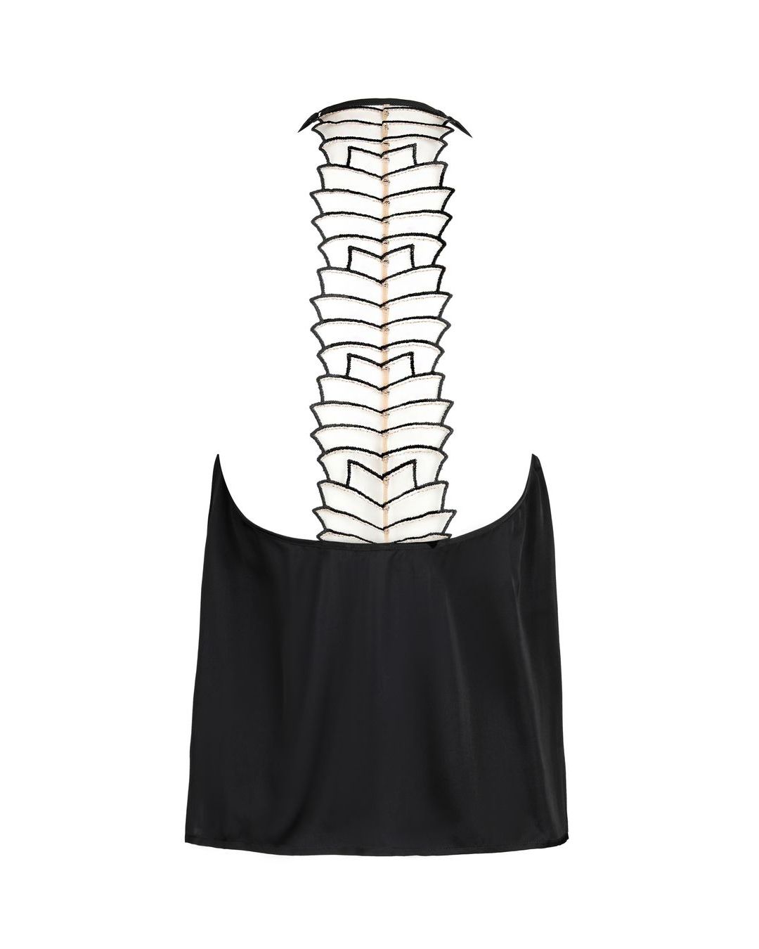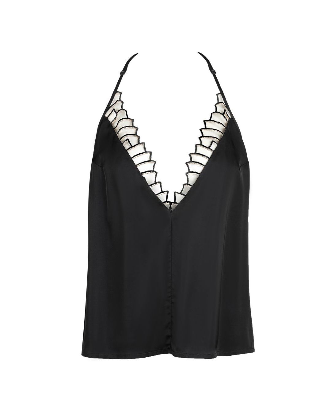 Le top cosmic dream Atelier Amour est noir avec un décolleté plongeant et un dos nageur brodé. Il possède des fines bretelles réglables. Il a un effet soyeux et il est très doux.