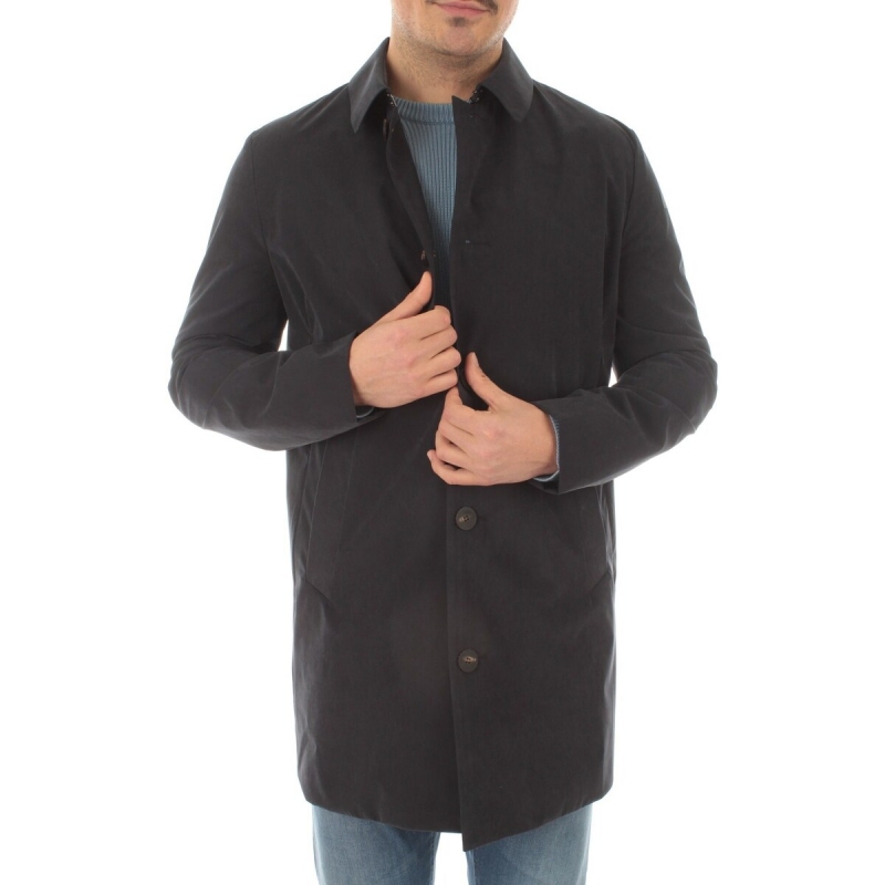 Le trench présente une coupe droite, une fermeture à boutons mais également des poches passepoilées latérales. On retrouve une poche intérieure zippée.