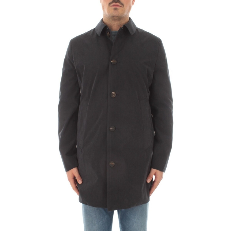 Le trench en peau de pêche bleu et noir de la marque Roberto Ricci Designs est une pièce intemporelle.
