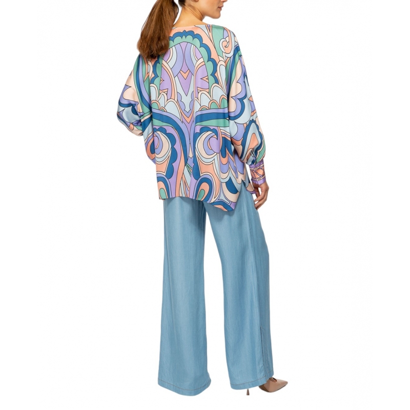 La tunique à col V print Pucci est une pièce en soie de la marque IVI Collection.