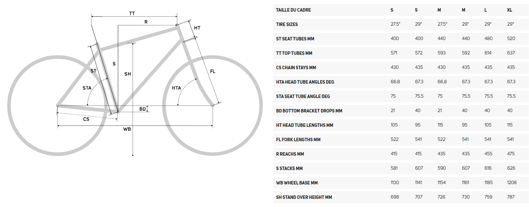 S: 100mm travel seatpost – M: 125mm travel seatpost – L/XL: 150mm travel seatpost