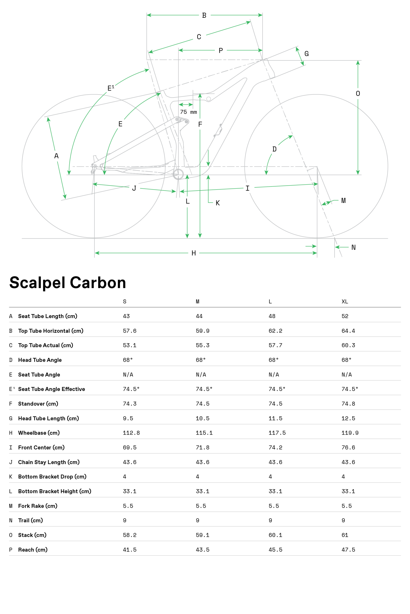 Cadre : Scalpel, Series 1 Carbon construction, 120mm travel, Proportional Response Suspension and Geometry, FlexPivot Chainstay, full internal cable routing, 73mm BSA, 1.5″ headtube with 1-1/8″ upper reducer/internal cable guide, 148x12mm thru axle, 55mm chainline, UDH, post-mount disc – 160mm native