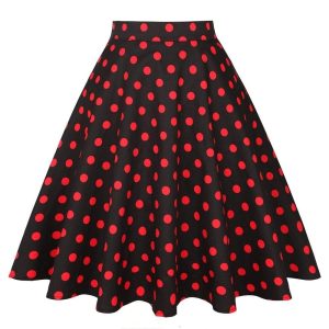 Jupe Vintage à pois rouges sur fond noir.