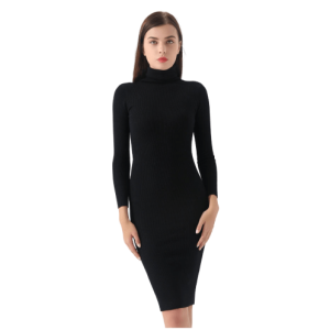 Robe vintage noire à col roulé et manches longues