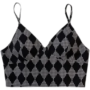 Débardeur Crop Top à Carreaux Monochrome – Style Queer Élégant
