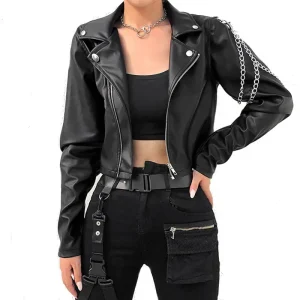 Veste en cuir à chaîne