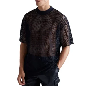 T-shirt Mesh Oversize à Col Montant