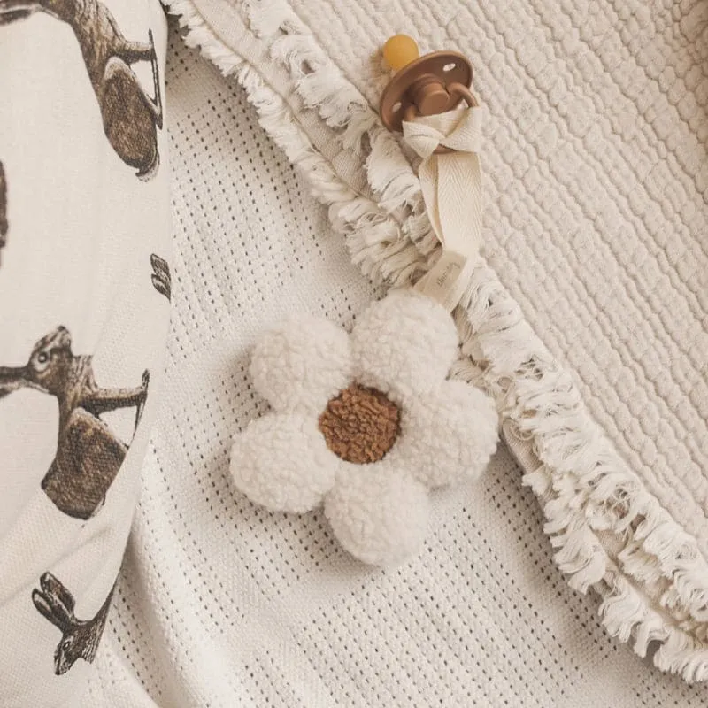 On craque pour cet adorable attache tétine fleur, toute douce grâce à sa matière sherpa !