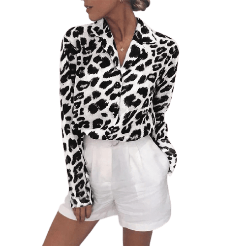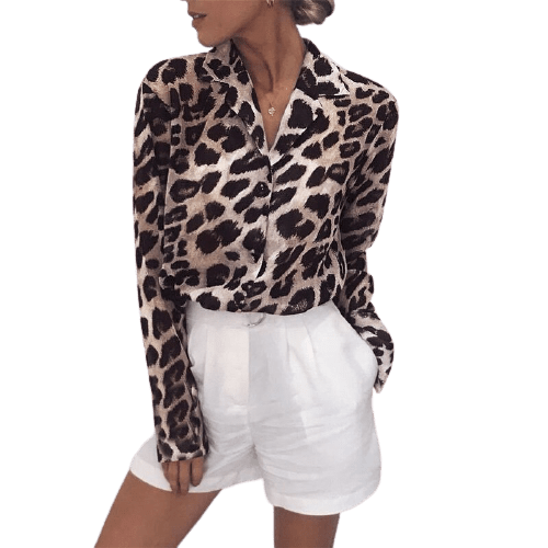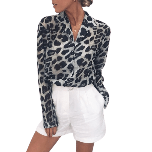 Profitez de notre offre spéciale et rafraîchissez votre style avec cette ravissante blouse vintage imprimé léopard, qui apportera une note de férocité sophistiquée à votre tenue du jour.