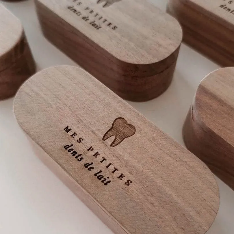 La boite à dents de lait en bois massif de Zakuw, vous permettra de conserver précieusement les dents de lait de votre enfant.