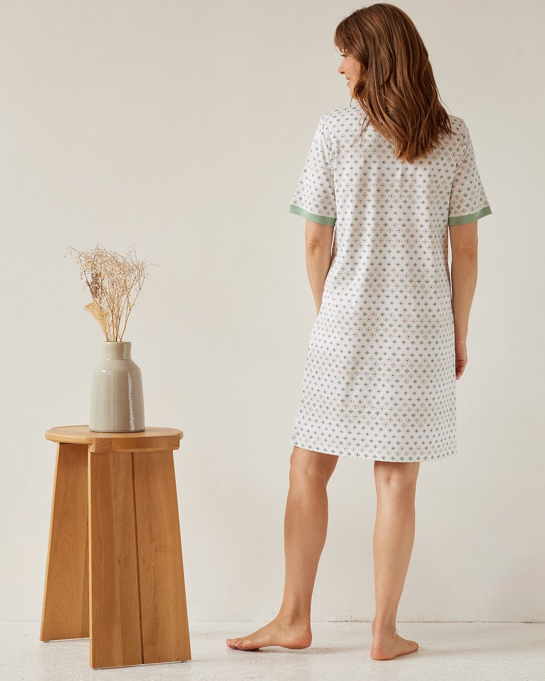La chemise de nuit Helio de la marque Canat est une chemise de nuit blanche à motifs vert menthe.
