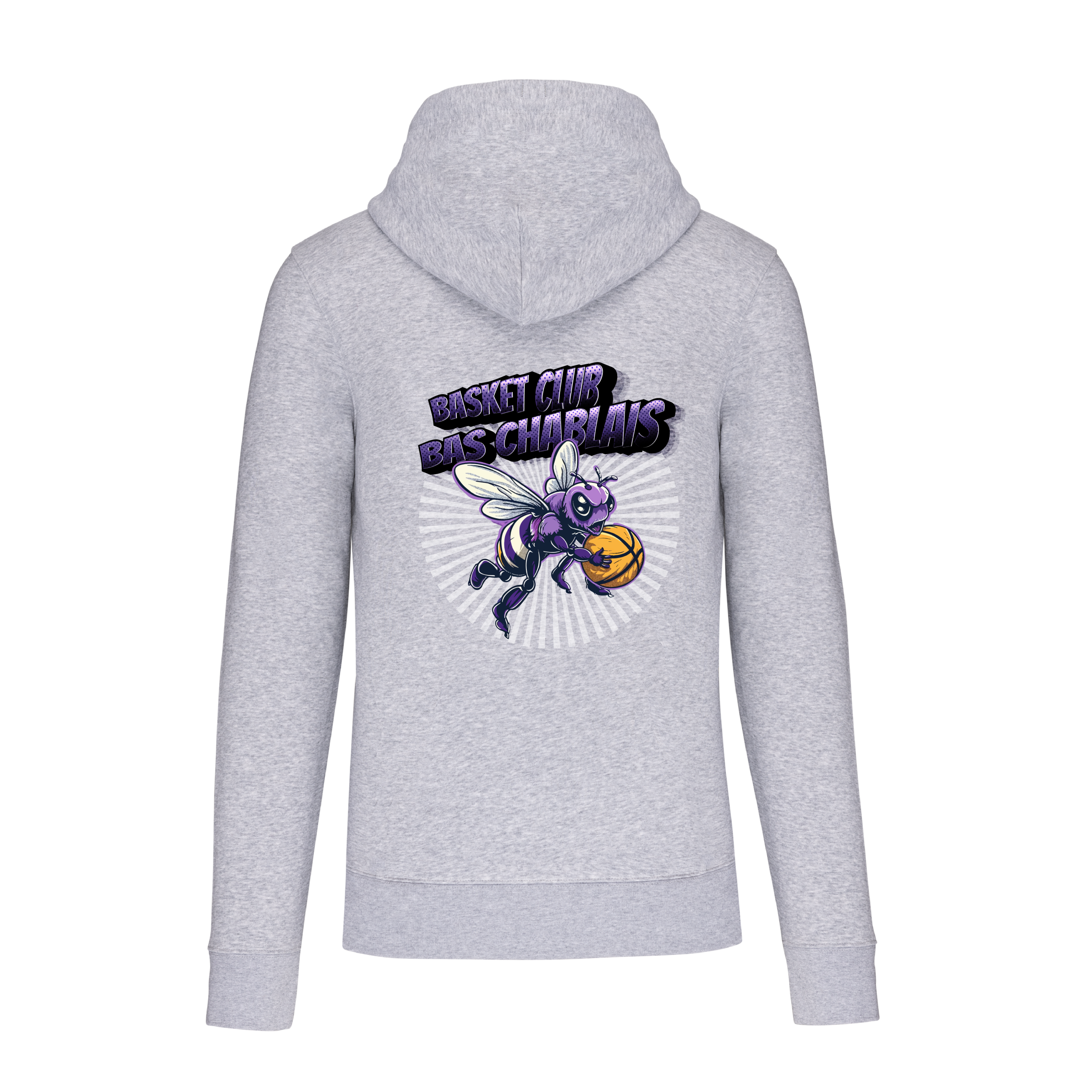 Le hoodie zippé Bee du Basket Club Bas Chablais est donc le choix idéal pour les supporters qui recherchent un vêtement stylé, confortable et respectueux de l’environnement, parfait pour afficher leur soutien avec fierté et confort.