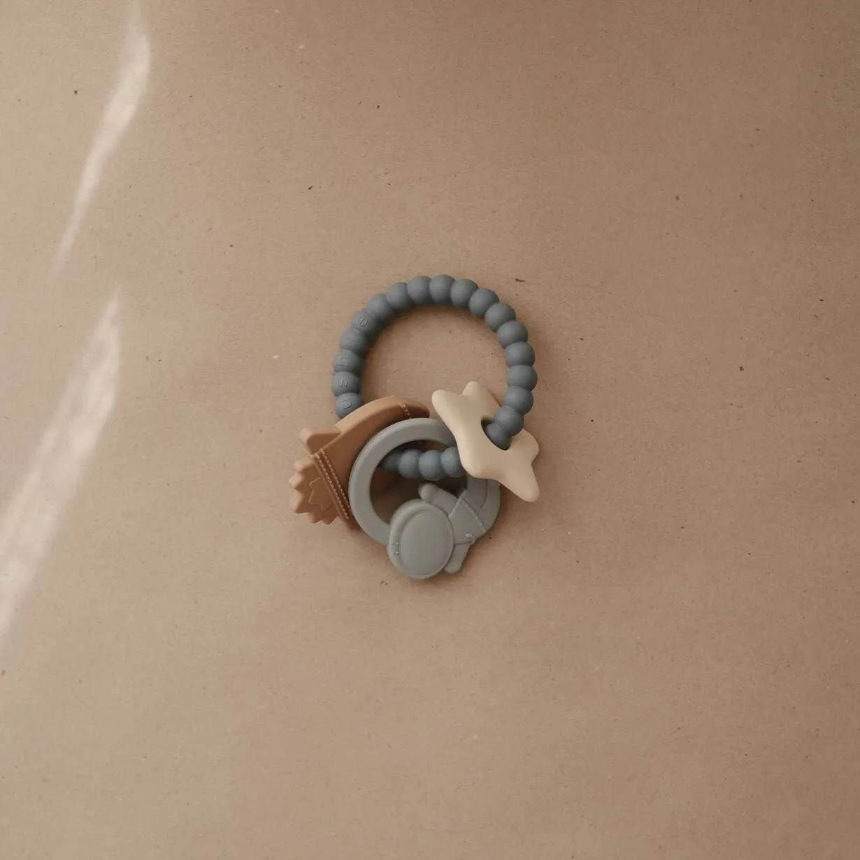 Ce jouet de dentition de Mushie sur le thème de l’espace éveillera les sens de bébé et par la même occasion, apaiser les gencives endolories au moment des poussées dentaires.