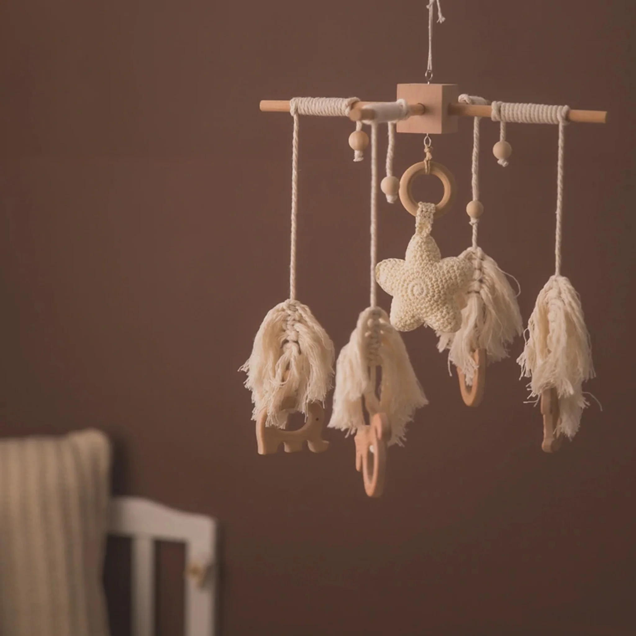Ce mobile est parfait pour bébé et pour décorer la chambre de votre enfant. Il est également très sûr et ne présente aucun risque pour votre bébé, car tous les matériaux utilisés sont écologiques et sans danger. Cependant, il est important de noter que le mobile ne doit pas être laissé à la portée des petites mains des bébés !