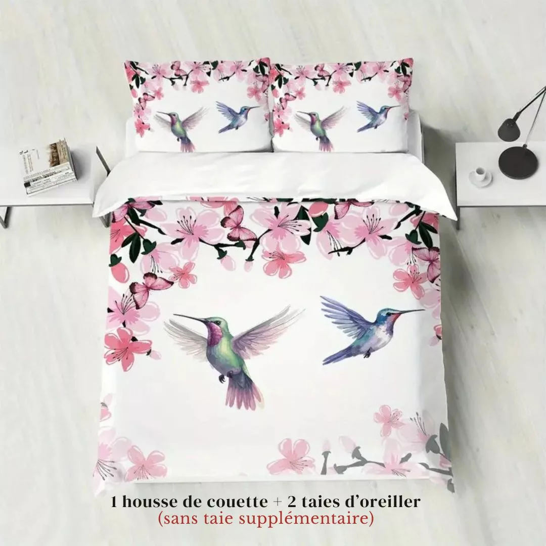 Parure de lit colibris et fleurs roses – L’harmonie parfaite entre douceur et élégance
