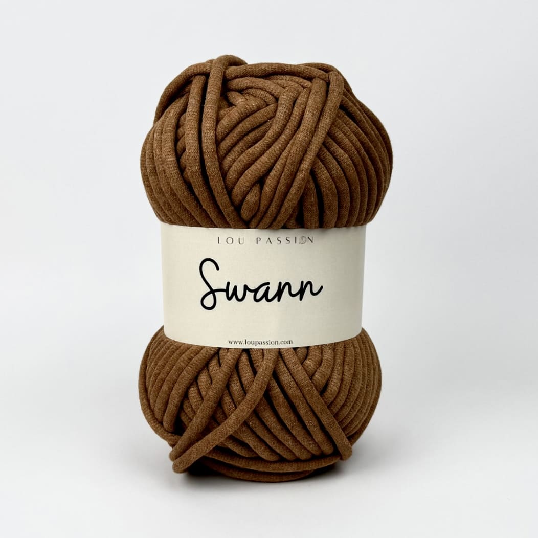 Pelote Swann, fil tube fabriqué en coton recyclé et doté d’un rembourrage en polyester.