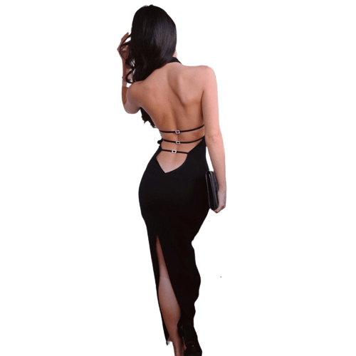 Le dos nu apporte une touche audacieuse et féminine à votre tenue, vous permettant de laisser une impression durable. Assortie d’une fente astucieusement placée, elle confère une élégance discrète tout en animant votre démarche de délicatesse.