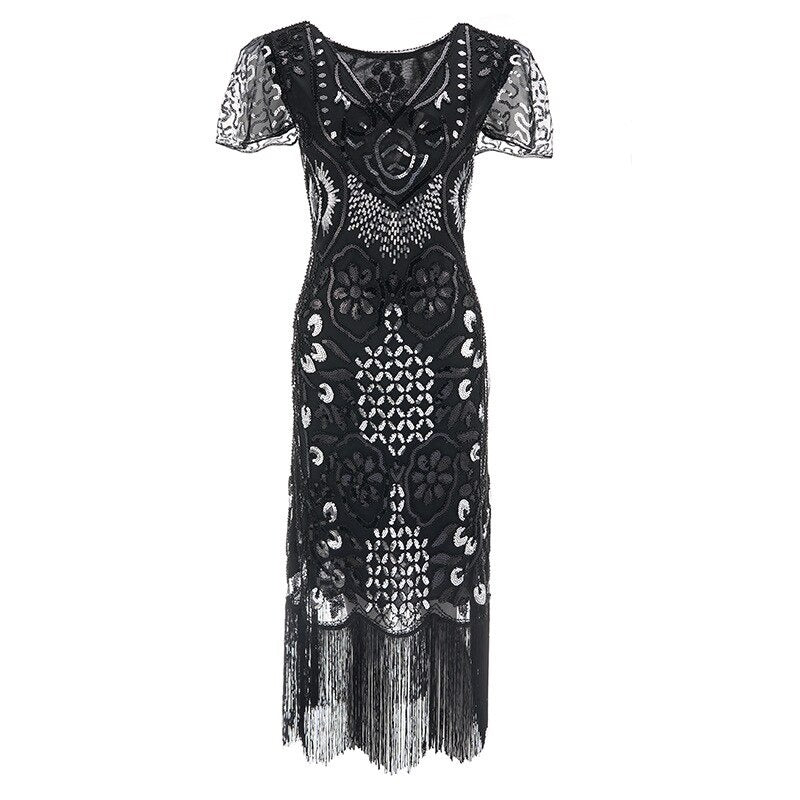 Élégance intemporelle avec la robe Gatsby haute couture noire et argentée