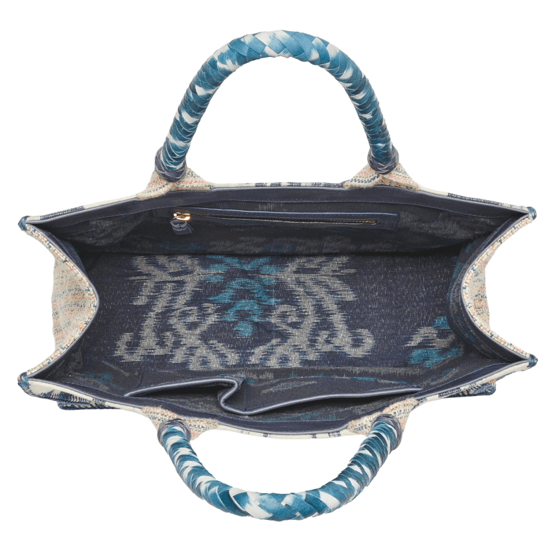 Le sac a été créé non loin de Bali. Chaque tissage est unique.