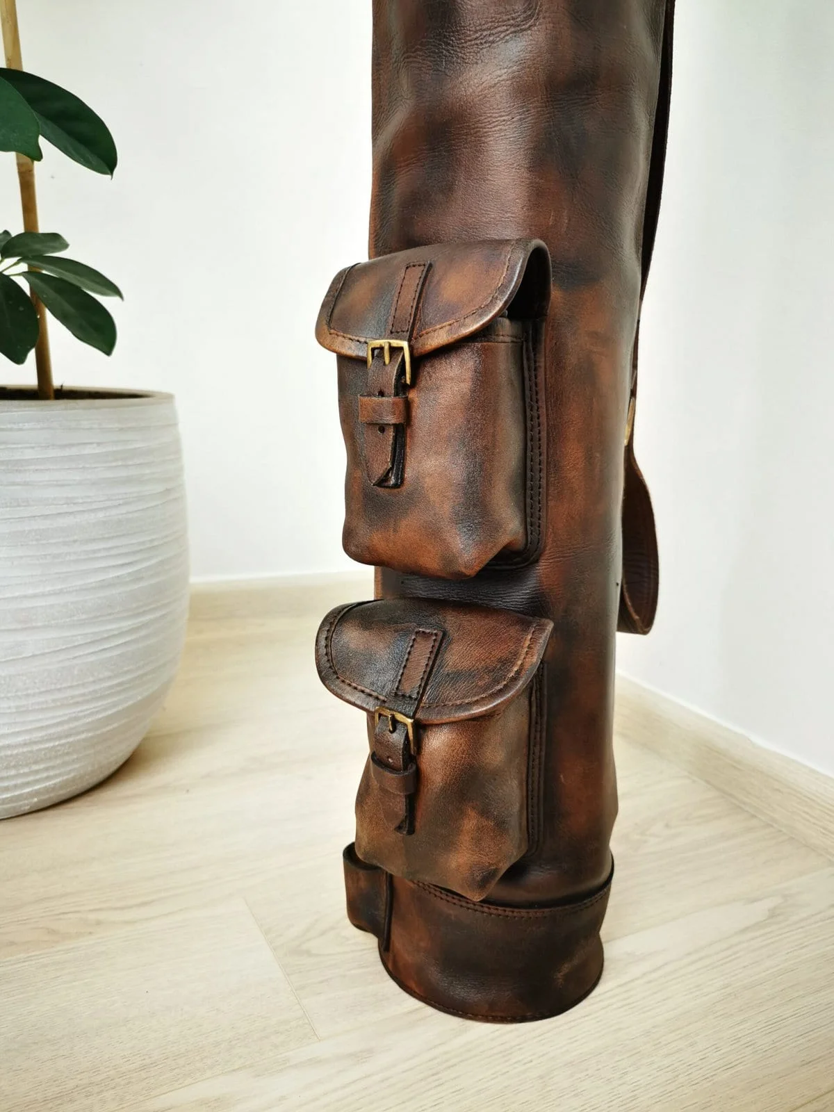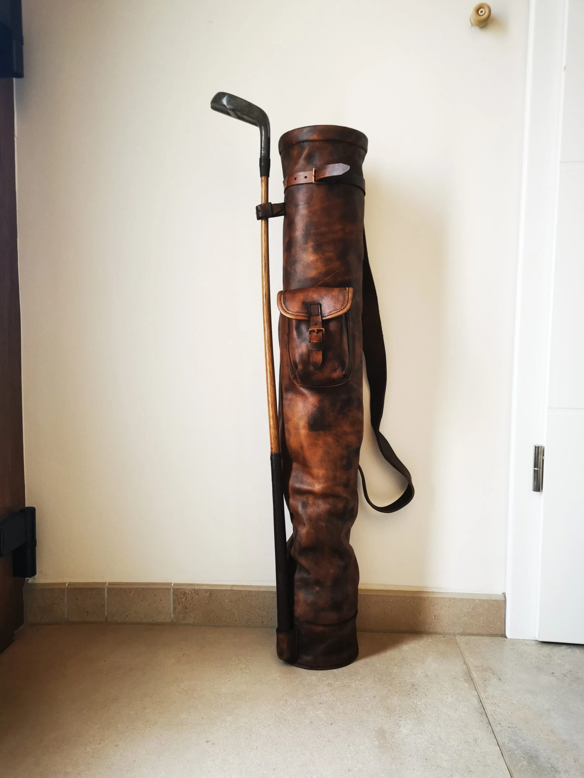 Le sac de golf en cuir tant attendu est enfin disponible pour tous les passionnés de sport vintage et d’objets authentiques. Ce modèle, entièrement fabriqué à la main, mêle élégance et robustesse, et devient à la fois un accessoire pratique pour vos parties et une pièce unique de décoration de luxe.