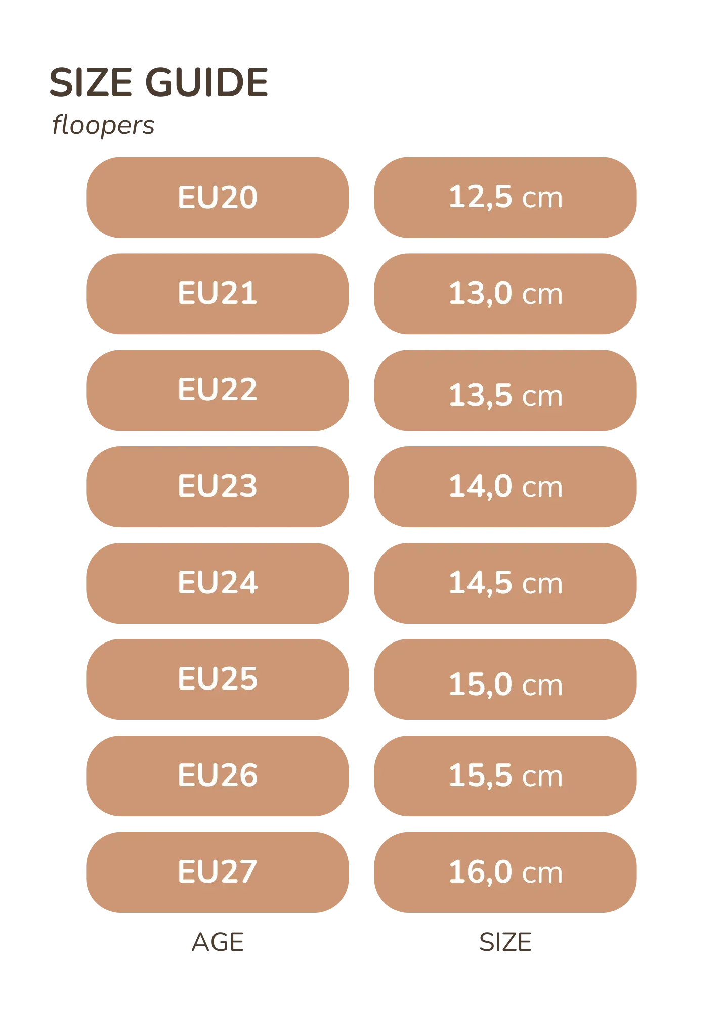 Attention, ces sandales taillent petites, nous vous conseillons de prendre une taille au dessus de la taille habituelle de votre enfant, mais surtout de mesurer le pied de votre enfant et de vous référer ensuite à la mesure du pied en cm.