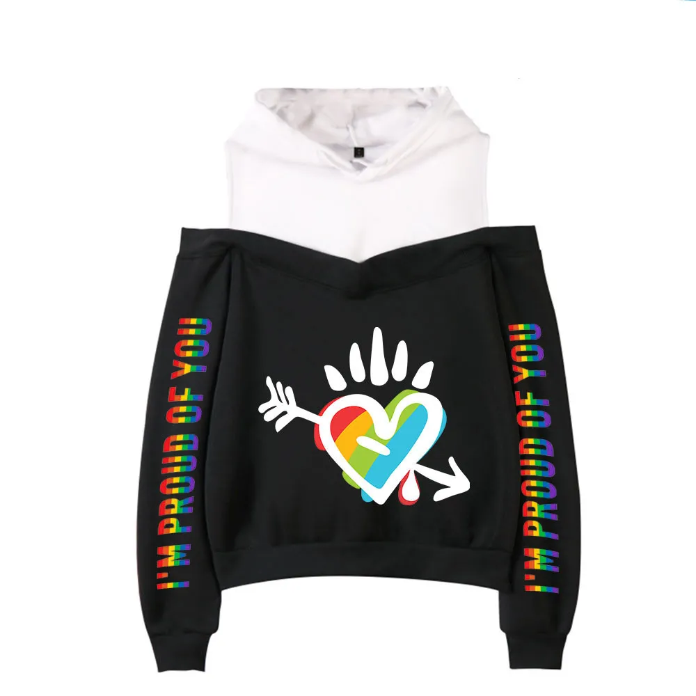 Sweat à capuche LGBT épaules dénudées à cordon 2 en 1