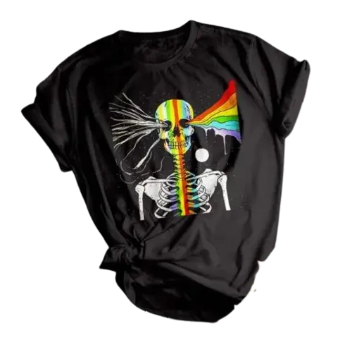 Découvrez notre T-shirt arc-en-ciel squelettique, une pièce unique qui allie audace et liberté. Avec son design coloré et sa représentation osée de la structure squelettique, ce T-shirt n’est pas simplement un vêtement, c’est une déclaration. Parfait pour ceux qui veulent afficher leur unicité et leur esprit libre, il est idéal pour les festivals, les événements LGBTQ+ ou tout simplement pour ajouter une touche de couleur à votre quotidien.