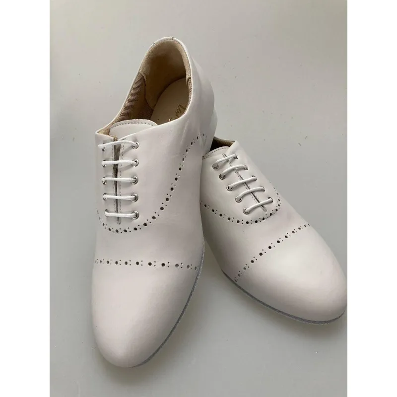 • Chaussures en cuir fin et souple blanc avec des perforations décoratives