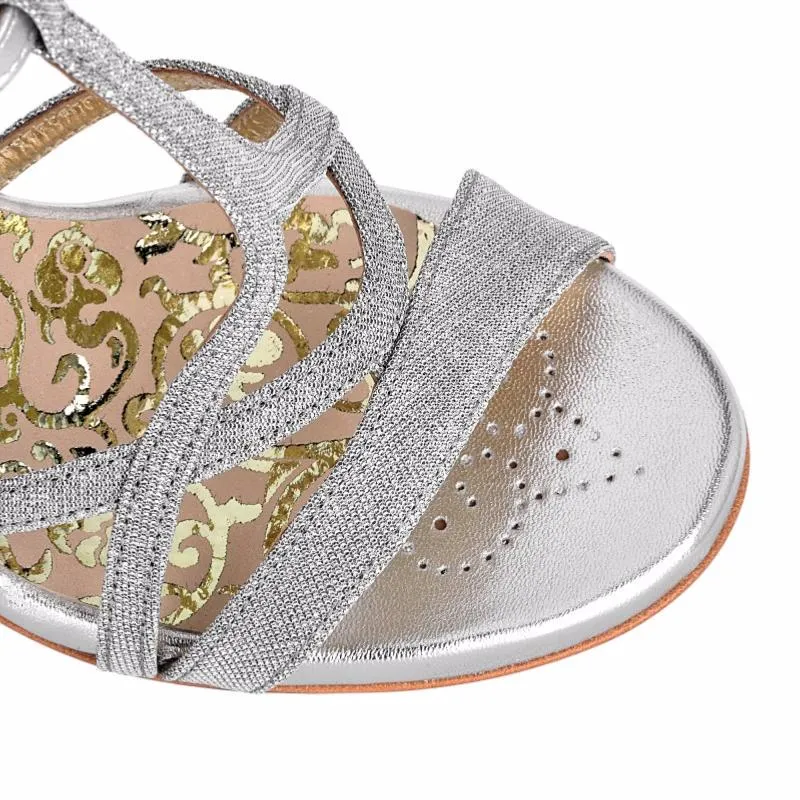 • Chaussures de tango en cuir argent et tissu pailleté argent