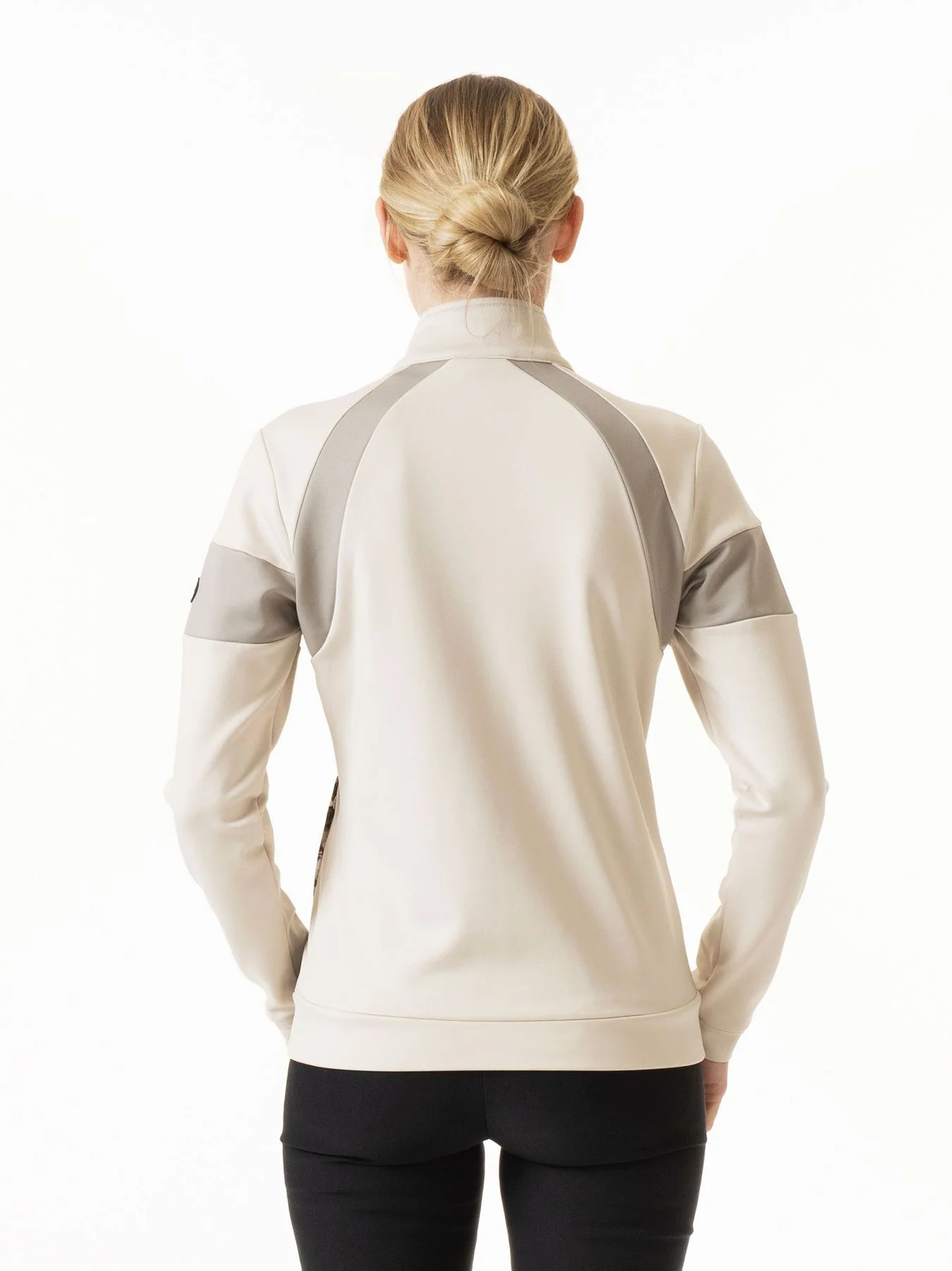 Son style sportif est agrémenté par une coupe flatteuse, un col montant et une fermeture éclair.