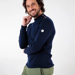 Pull Royal Mer col montant boutonné Marine – ADRIAN